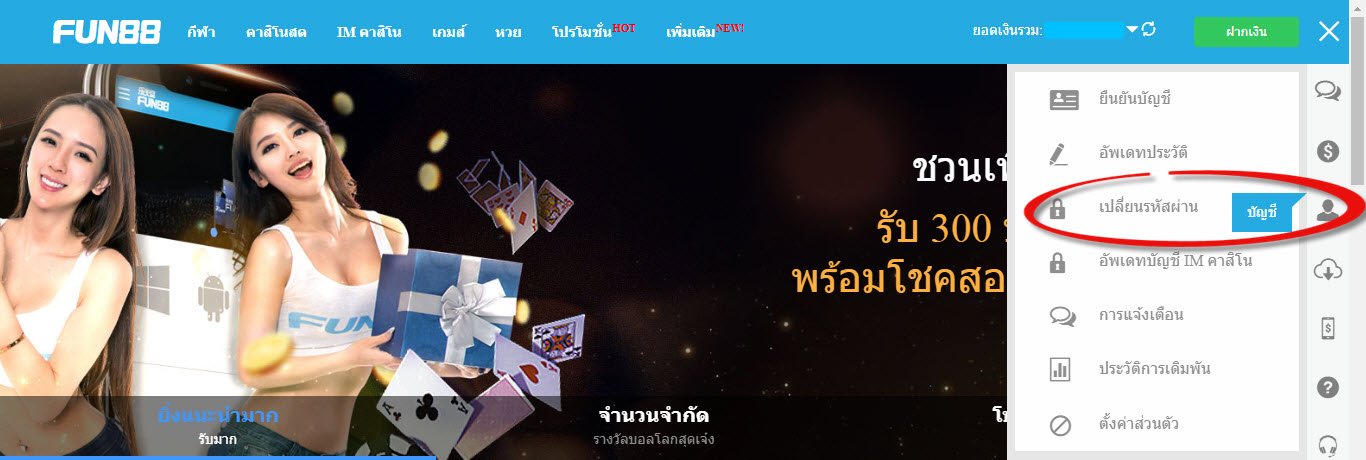 วิธีแก้ไข รหัสผ่าน ของบัญชีใน FUN88